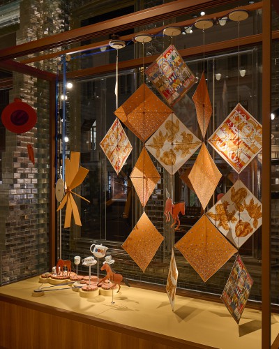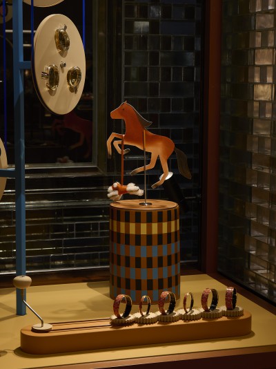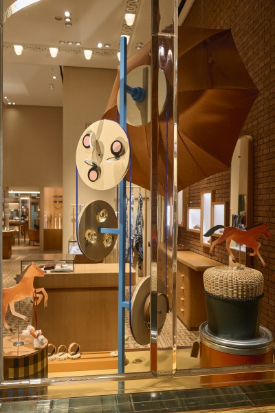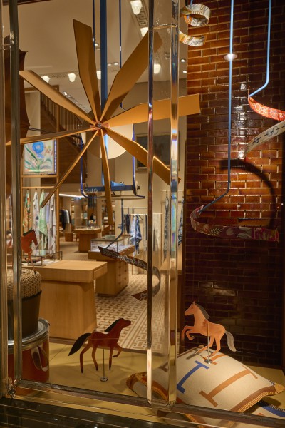 For the autumn artist windows at Hermès in Amsterdam, Johannes Langkamp created Following the Wind, an installation where the iconic Hermès horse explores a world of motion and wonder. Kinetic constructions with scarves, mirrors, umbrellas, and everyday objects are set in motion by windmills and pulleys, merging Hermès’ products with Langkamp’s artistic practice. The result is a playful encounter between fashion and art, where movement, material, and narrative come together in an enchanting scene.